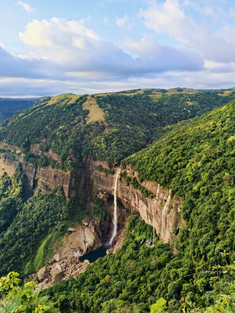 Sohra is a breathtaking destination famed for its dramatic landscapes and record-breaking rainfall. This enchanting town, perched on the Khasi Hills, boasts deep gorges, lush green valleys, and roaring waterfalls that create a spectacular natural tapestry. The mist-laden hills and ever-changing skies add to its mystical charm, making it a paradise for nature enthusiasts. From the mesmerizing Nohkalikai Falls—the tallest plunge waterfall in India—to the awe-inspiring living root bridges of nearby villages, Sohra offers an experience unlike any other.